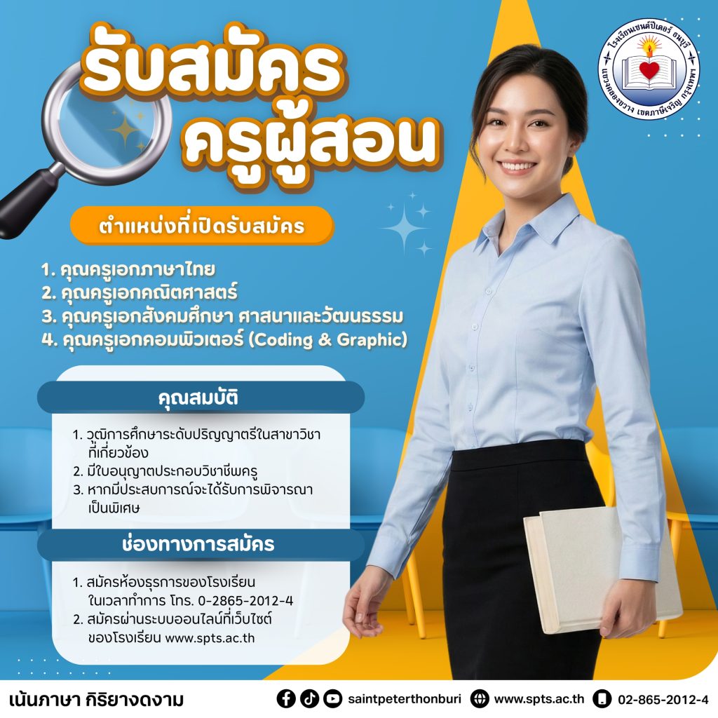 โรงเรียนเซนต์ปีเตอร์ ธนบุรี สร้างคนดีมีคุุณธรรม เลิศล้ำวิชาการ สื่อสารได้หลายภาษา ก้าวหน้าเทคโนโลยีสร้างสังคมแห่งการเรียนรู้ มุ่งสู่มาตรฐานสากล